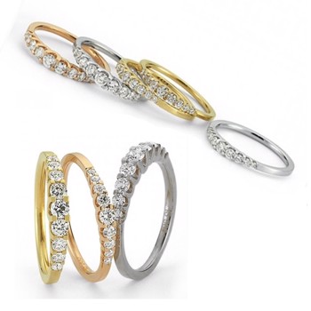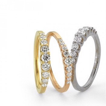 Rødgulds Alliance ringe fra Nuran med 9 diamanter i forløb, kan leveres med ialt 0,24 ct - 0,43 ct - 0,50 ct 0,75 ct og 1,00 ct Wesselton / SI. Disse alliance ringe fra Nuran's Empire serie, hvor de set fra siden ligner at de glimtende dimanter svæver, kan leveres både i rødguld, hvidguld og rosaforgyldt guld.