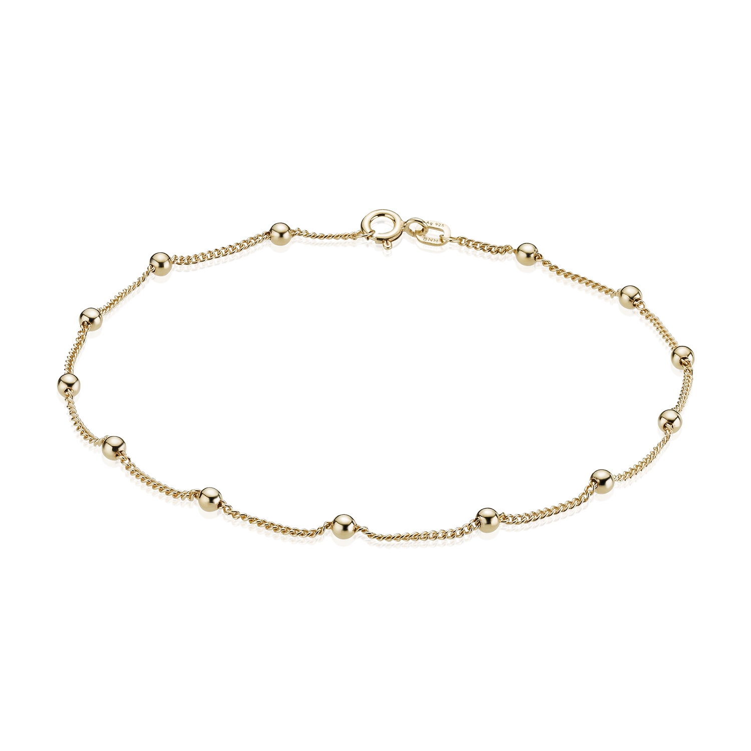 Forgyldt sølv Ankel kæde i rund panser med kugler, 25-27 cm