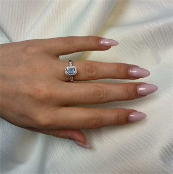 14 karat diamant ring med ialt 1,32 ct lab grown diamanter TW/VS - 1 ct kvadratisk center sten med ialt 0,32 ct diamanter rundt om center stenen og på ringskinne.