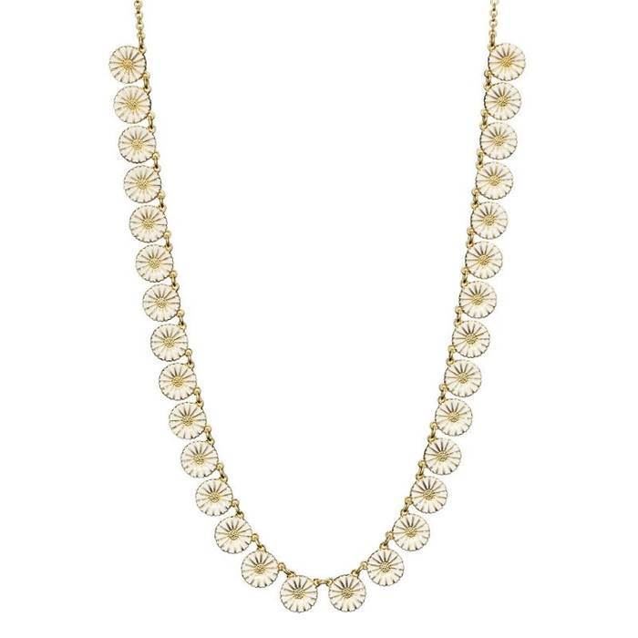 Forgyldt marguerit collier med 30 stk 11 mm margueritter med hvid emalje