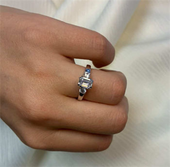 14 karat hvidgulds diamant ring med ialt 1,33 ct lab grown diamanter TW/VS - 1 ct firkantet center sten og 2 sten på ringskinne.