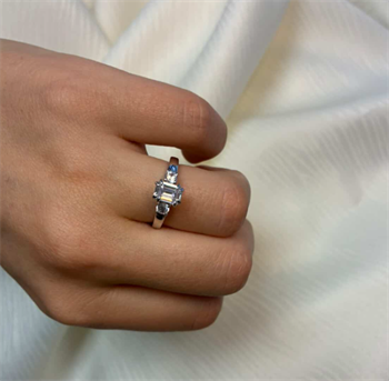 14 karat guld diamant ring med ialt 1,33 ct lab grown diamanter TW/VS - 1 ct firkantet center sten og 2 sten på ringskinne.
