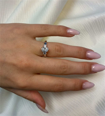 14 karat hvidgulds diamant ring med ialt 1,33 ct lab grown diamanter TW/VS - 1 ct oval center sten og 2 sten på ringskinne.