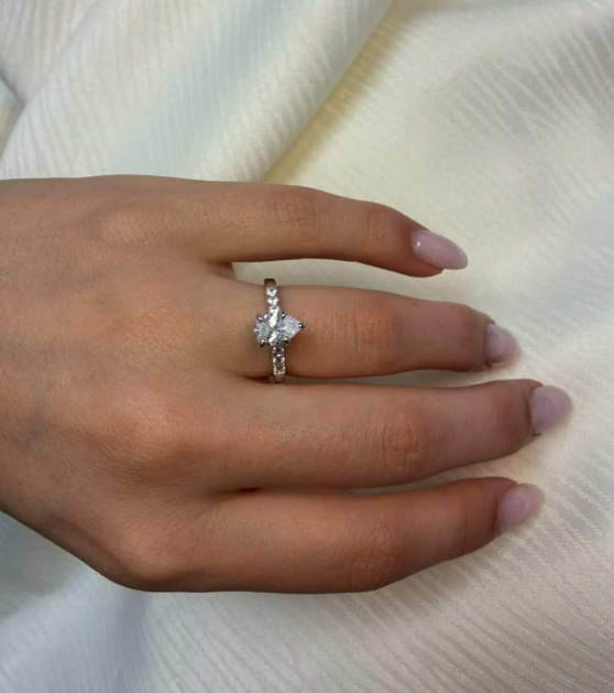 14 karat hvidgulds diamant ring med ialt 1,2 ct lab grown diamanter TW/VS - 1 ct dråbe formet center sten og 6 sten på ringskinne.