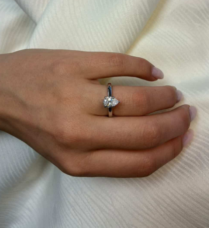 14 karat diamant ring med ialt 1,0 ct lab grown diamanter TW/VS - 1 ct dråbe formet center sten og glat ringskinne