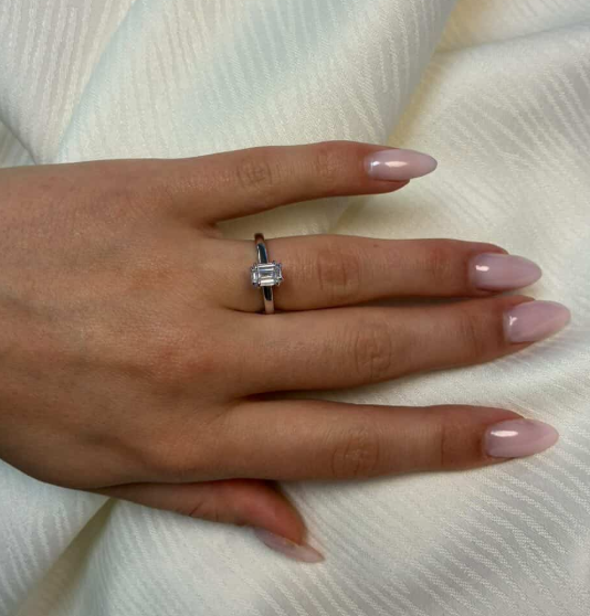 14 karat hvidgulds diamant ring med ialt 1,0 ct lab grown diamanter TW/VS - 1 ct firkantet center sten og glat ringskinne.