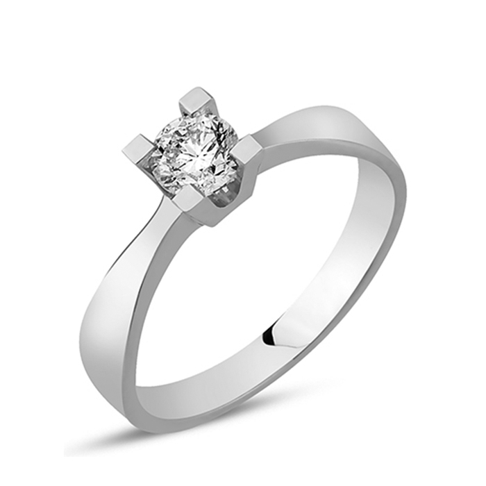 Klassisk fingerring i 14 karat hvidguld med 0,05 ct Wesselton SI, smukt fattet i en kraftig 4 grab fatning