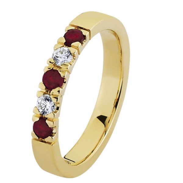 Nuran 14 kt rødguld alliance ring, fra Colour serien med 2 + 3 stk 0,07 ct Wesselton - SI / Rubin