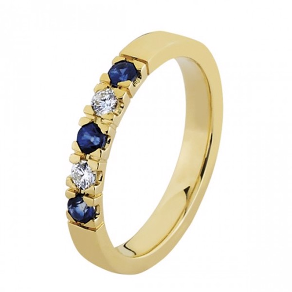 14 kt alliance ring med mix af brillanter og blå safir