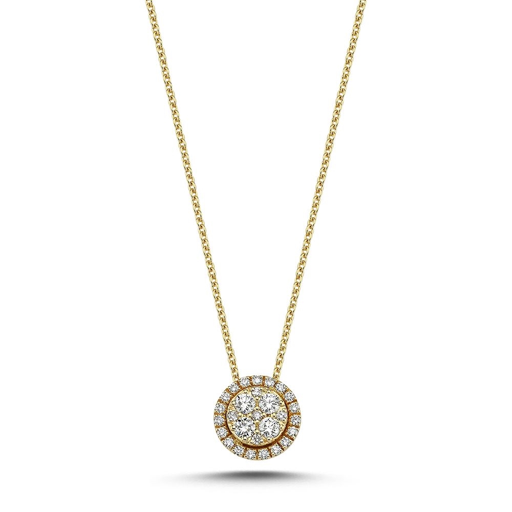 Posh runde vedhæng er i 14 karat guld med ialt 0,45 ct. glitrende brillianter i kvaliteten Wesselton Si og er inkl 42 cm kæde.
