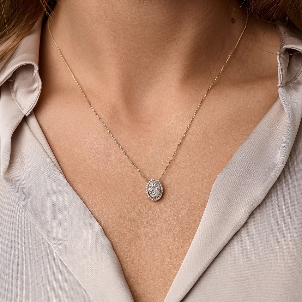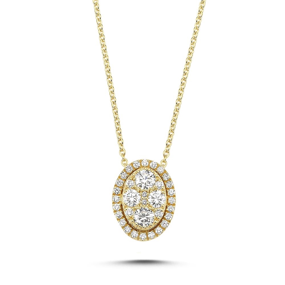 Posh ovale vedhæng er i 14 karat guld med ialt 0,64 ct. glitrende brillianter i kvaliteten Wesselton Si og er inkl 42 cm kæde.