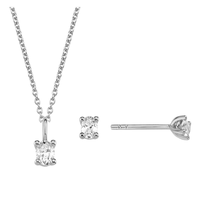 The One Oval smykkesæt, med i alt 1,14 ct Diamant i 14 kt hvidguld