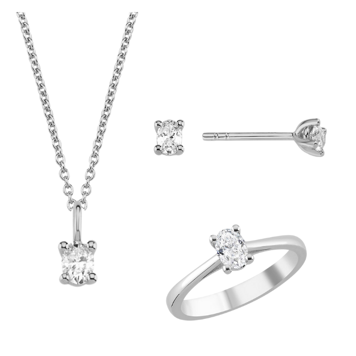 The One Oval smykkesæt, med i alt 0,92 ct Diamant i 14 kt hvidguld