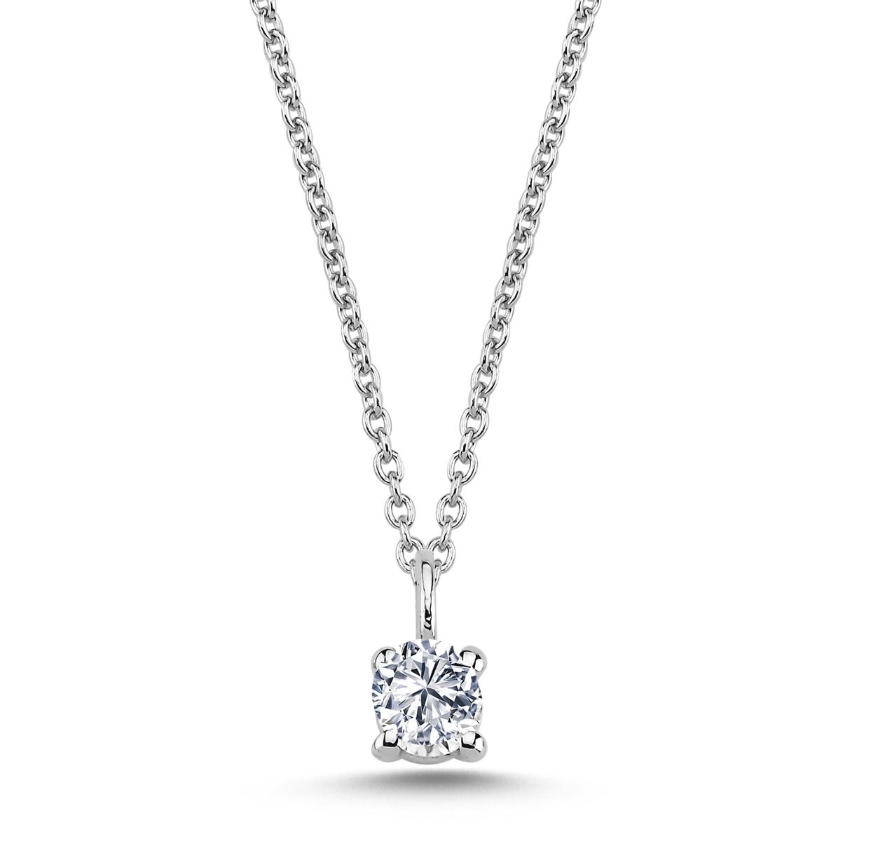 The One smykkesættet med ring, ørestikker og vedhæng er i 14 karat hvidguld med 0,28 ct Wesselton SI brillianter smukt fattet med detaljeret fatninger og 42 cm sølv kæde til vedhænget.