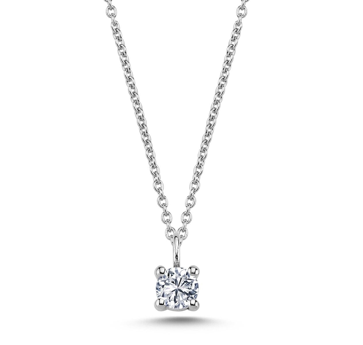 The One smykkesættet med ring, ørestikker og vedhæng er i 14 karat hvidguld med 0,23 ct Wesselton SI brillianter smukt fattet med detaljeret fatninger og 42 cm sølv kæde til vedhænget.