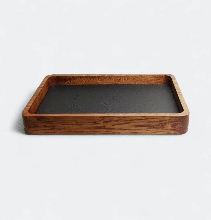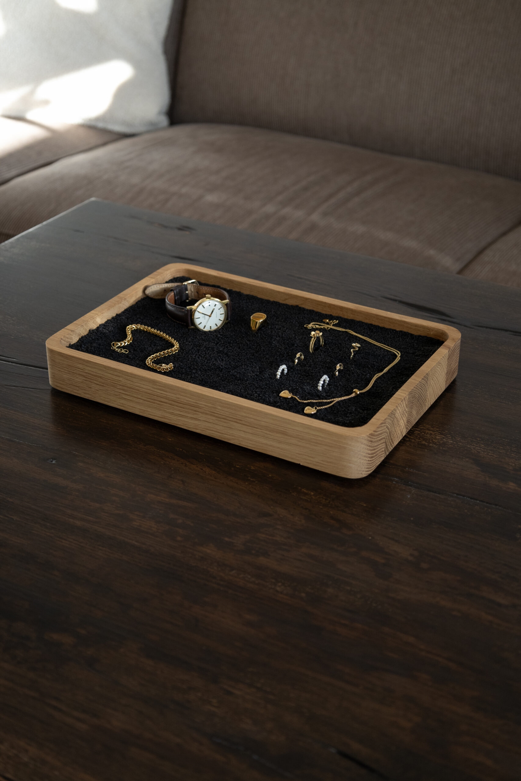 Valet i natur egetræ - placer dine ure og smykker med stil - flere farver læder