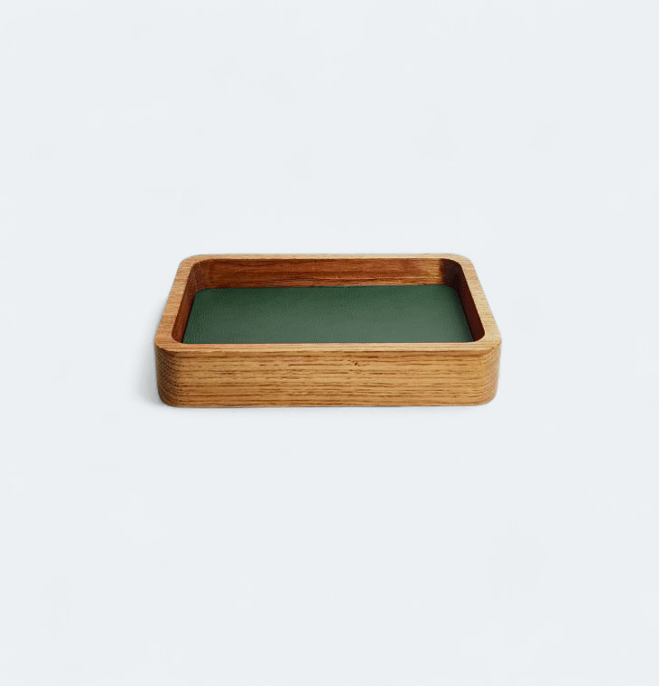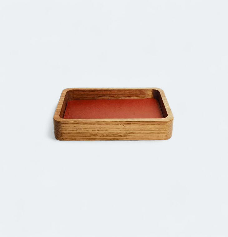 Valet i natur egetræ - placer dine ure og smykker med stil - flere farver læder